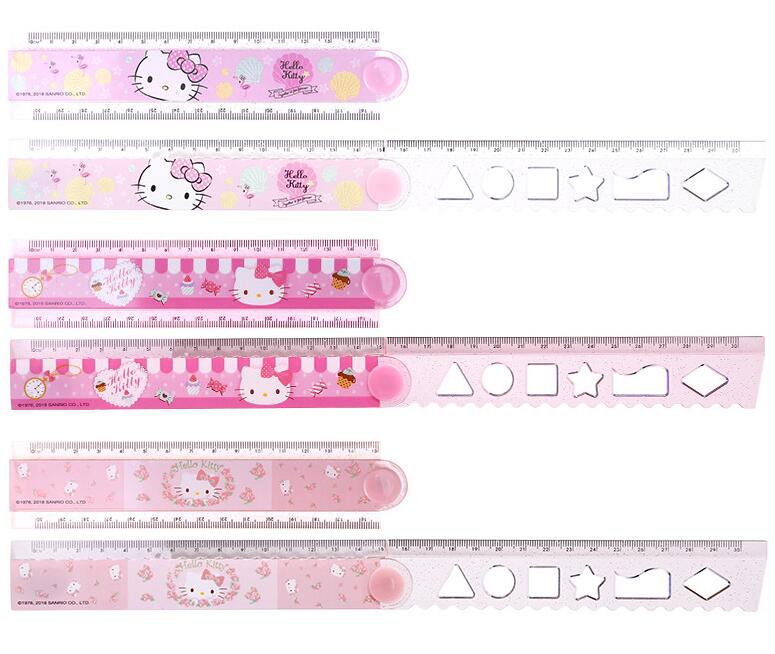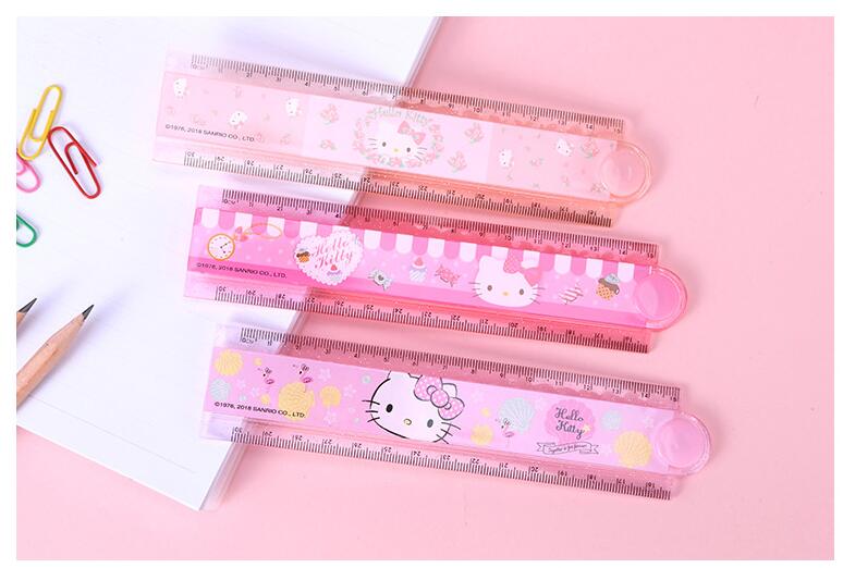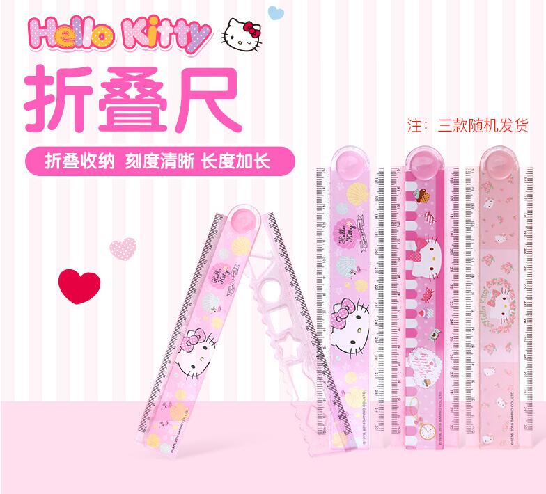 HELLOKITTY卡通折疊尺 小學生用折疊尺KT貓多功能加長卡通直尺30cm凱蒂貓尺子波浪尺格尺文具兒童學習用品