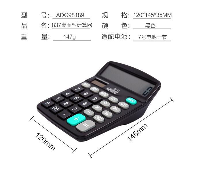 晨光文具837太陽能計算器商務型辦公用會計專用科學商用學生考試大屏大按鍵計算機大號小號便攜雙電源